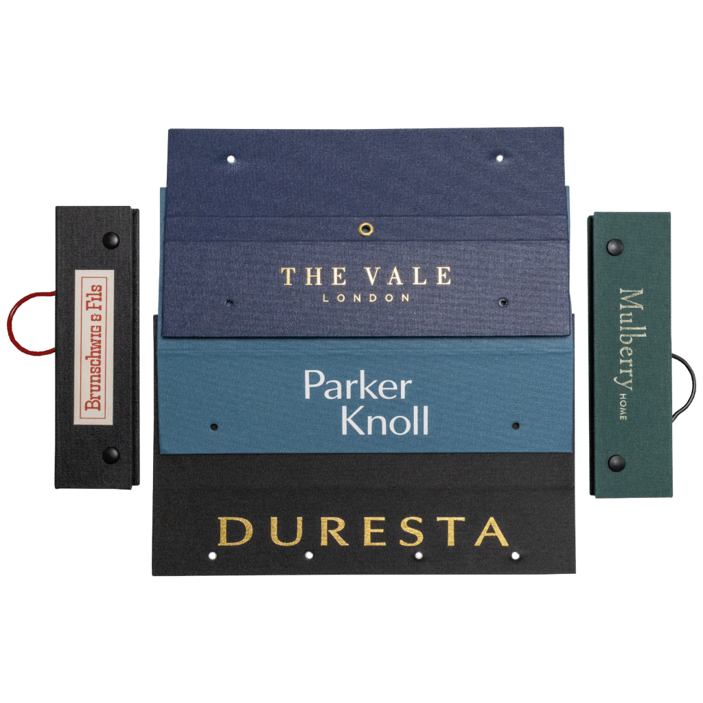 At Raymark London, we specialise in producing high quality headers that complete your sample presentations with a refined, professional finish. Designed to complement fabric, wallpaper, and trimming collections, our headers are fully customisable to match your branding, ensuring a cohesive and polished display across all your products.